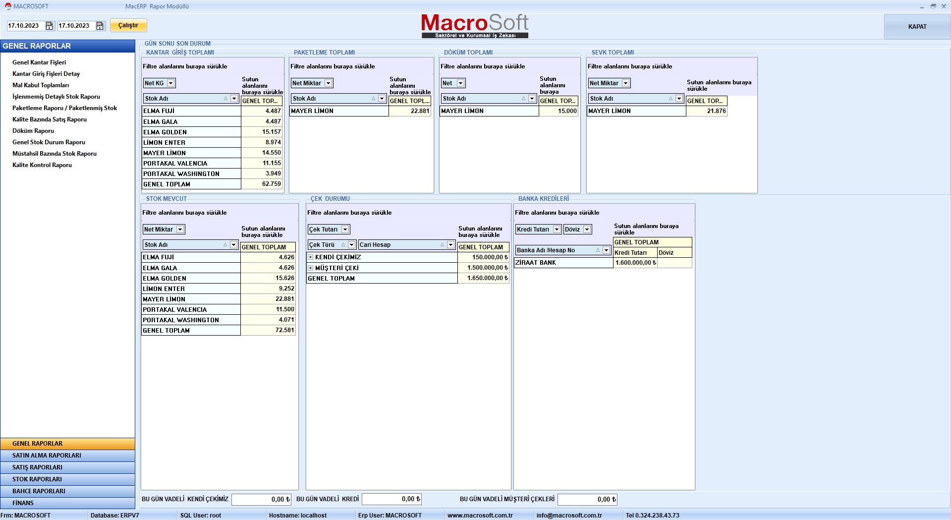 Macrosoft MacERP Yaş Sebze Meyve Otomasyonu, yaş sebze ve meyve sektöründeki tedarik, stok, satış ve sevkiyat süreçlerini uçtan uca dijitalleştirerek hızlı ve verimli yönetim sağlar.